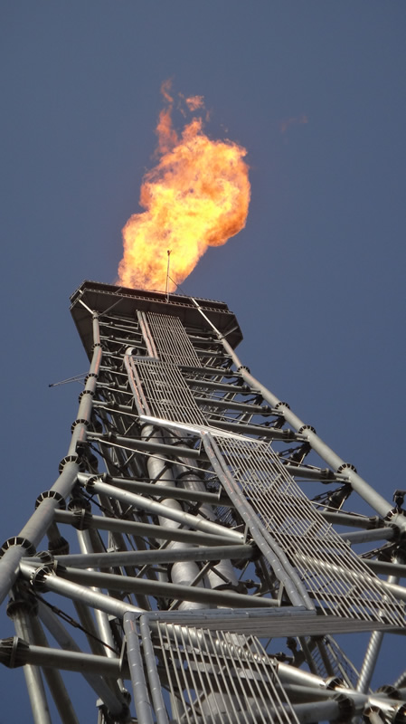 陸用高架火炬系統主要用于石油、化工、冶金等企業生產過程中的尾氣、不平衡廢氣及緊急事故下的放空燃燒,其特點是排放量調節范圍大,點火方式采用頂部二級點火或地面爆燃裝置點火,十分安全可靠,再配火焰監控系統,可實現火炬的滅火報警。
